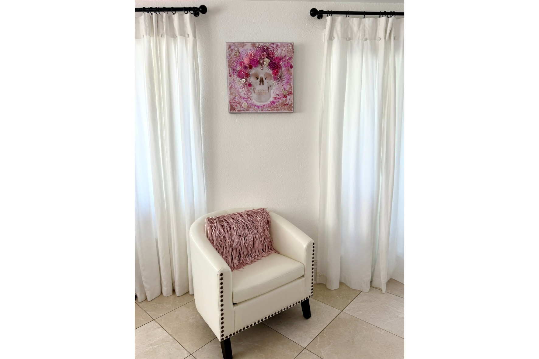Gucci Skull in Pinks is a bold and elegant artwork that blends luxury-inspired style with a striking pop-art aesthetic. The composition balances light and dark tones, creating a visually captivating focal point. Its luminous and textured presence adds sophistication and collectible appeal to any contemporary art collection.