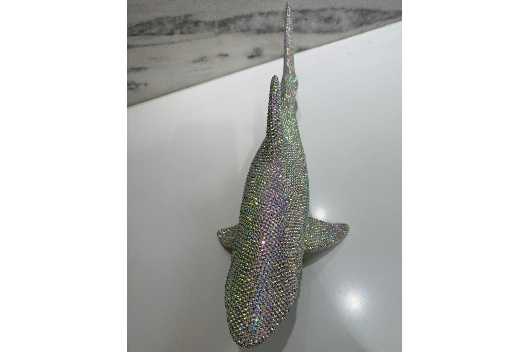 - Dazzling detail - Iridescent crystal rhinestones shimmer from every angle, accentuating the shark’s sleek contours and striking silhouette.